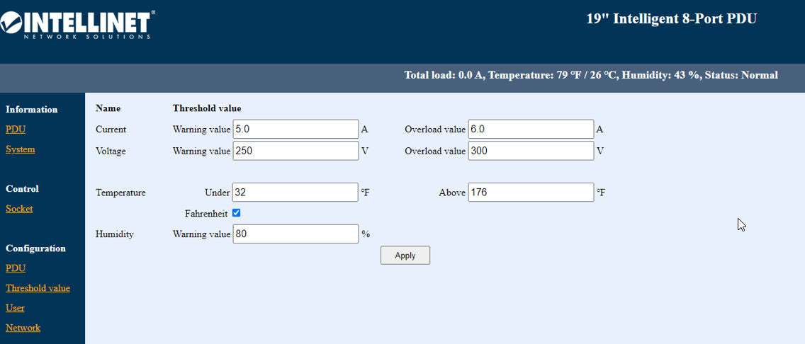 Multipresa intelligente per installazione a rack 19"; permette il monitoraggio di alimentazione, temperatura e umidità