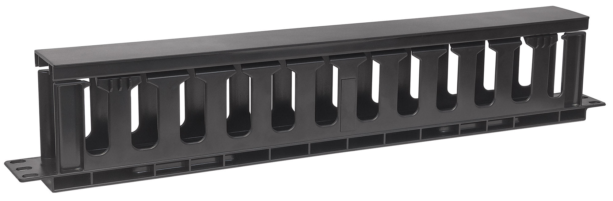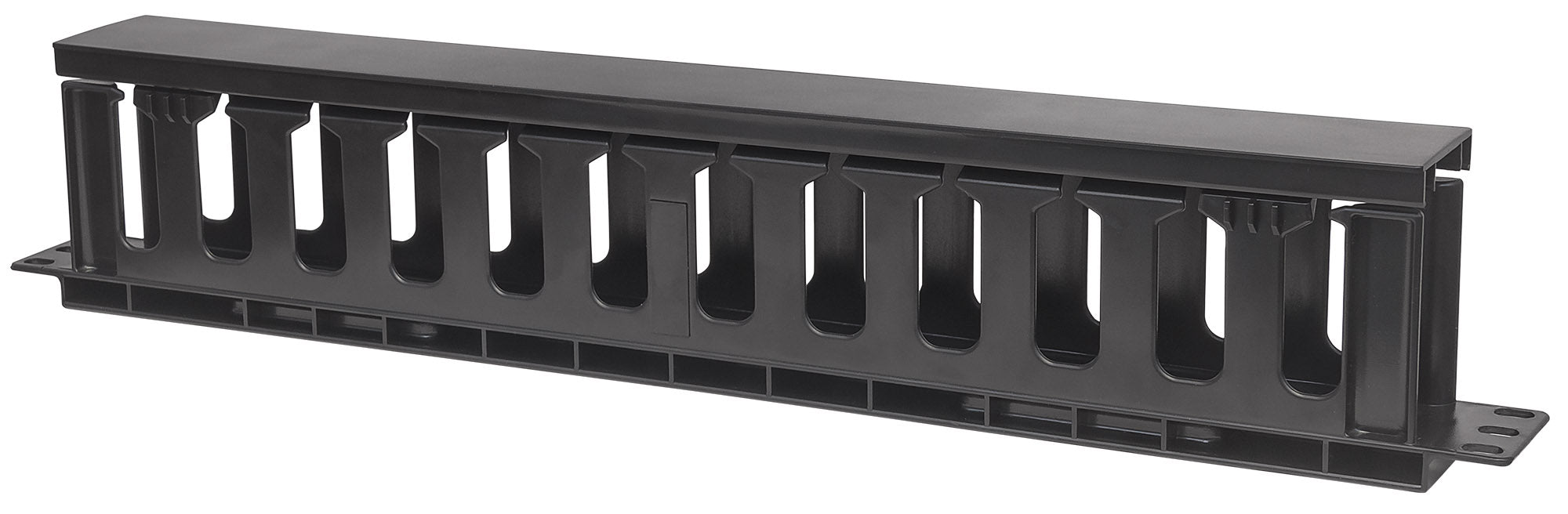 Pannello di gestione cavi 19", 1U, con copertura, Nero