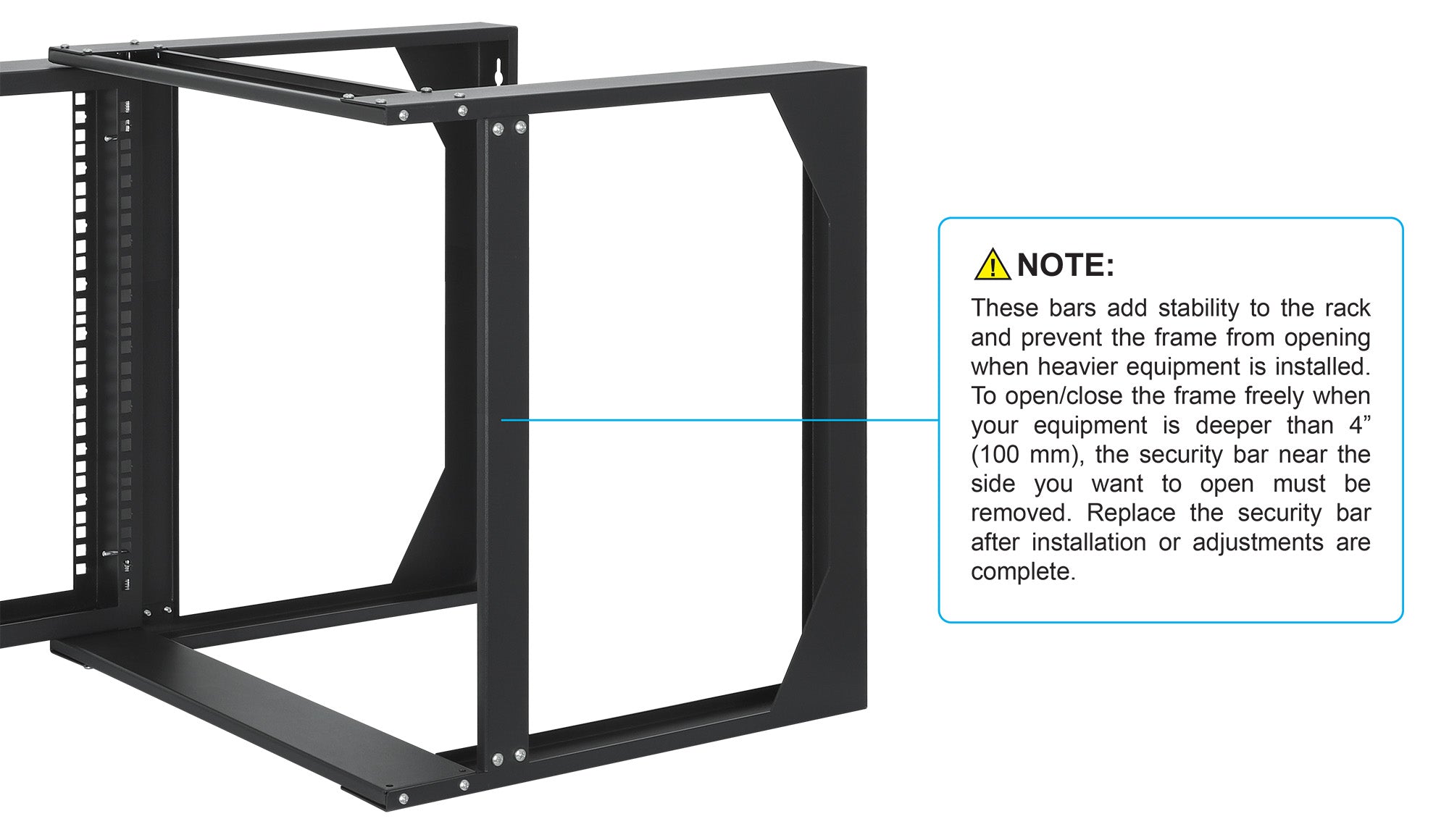 - Due montanti con guide di montaggio anteriori e e telaio reversibile