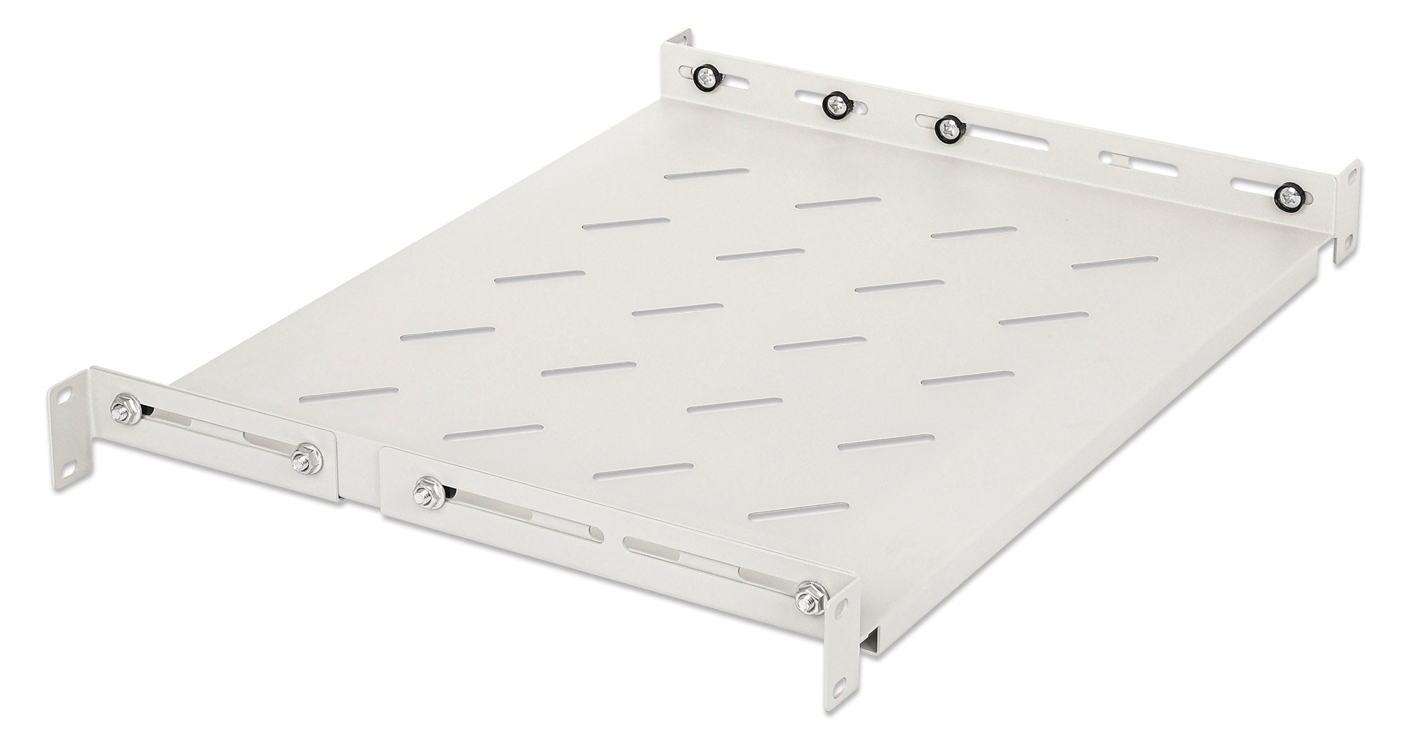 - Mensola fissa estensibile con profondità regolabile da 350 a 550 mm per installazioni flessibili in armadi da 600 mm di profondità