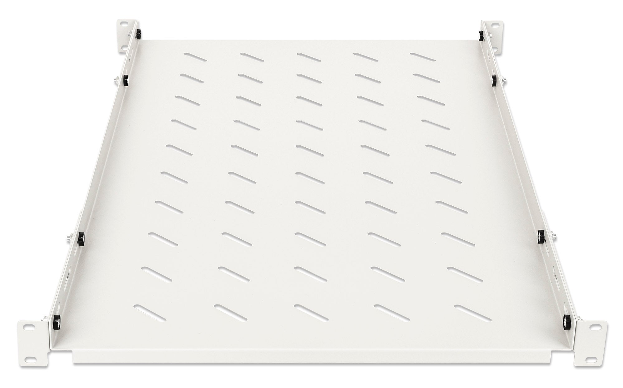 - Mensola fissa estensibile con profondità regolabile da 750 a 950 mm per installazioni flessibili in armadi server da 1000 mm di profondità