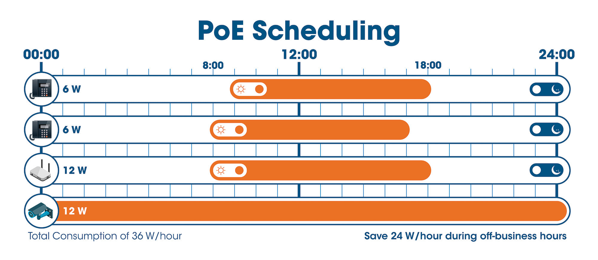 - Self-Healing Network: la funzione Powered Device Monitor (PDM) riavvia qualsiasi dispositivo PoE connesso che non risponde o non invia traffico di rete