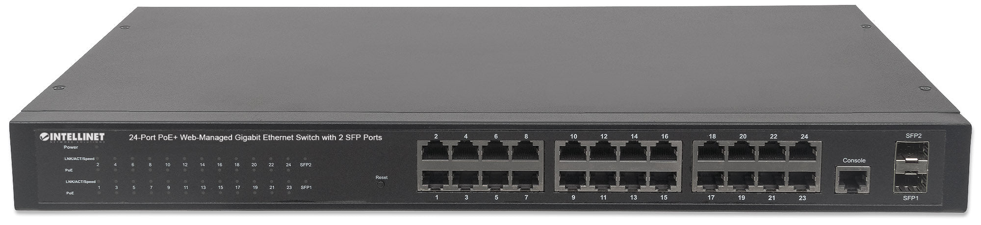 - Switch 24 Porte PoE+ Web-Managed Gigabit Ethernet con 2 Porte SFP