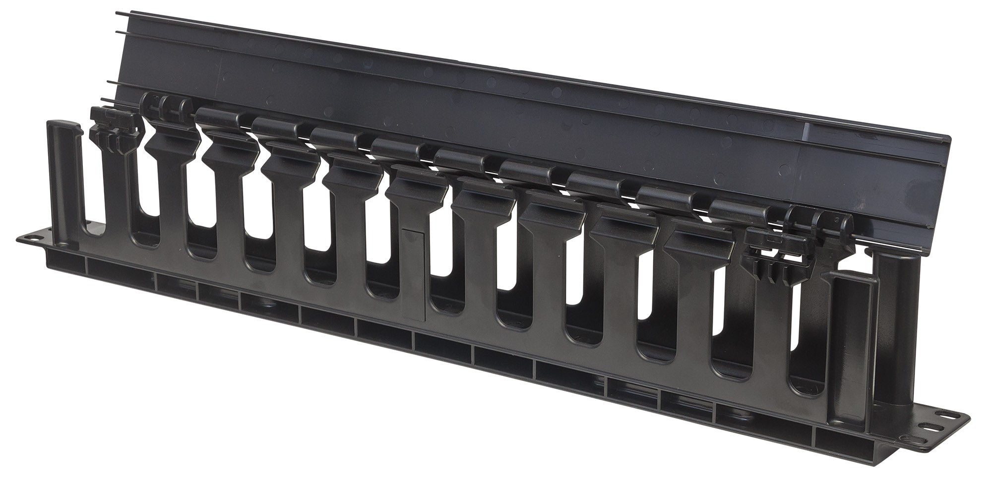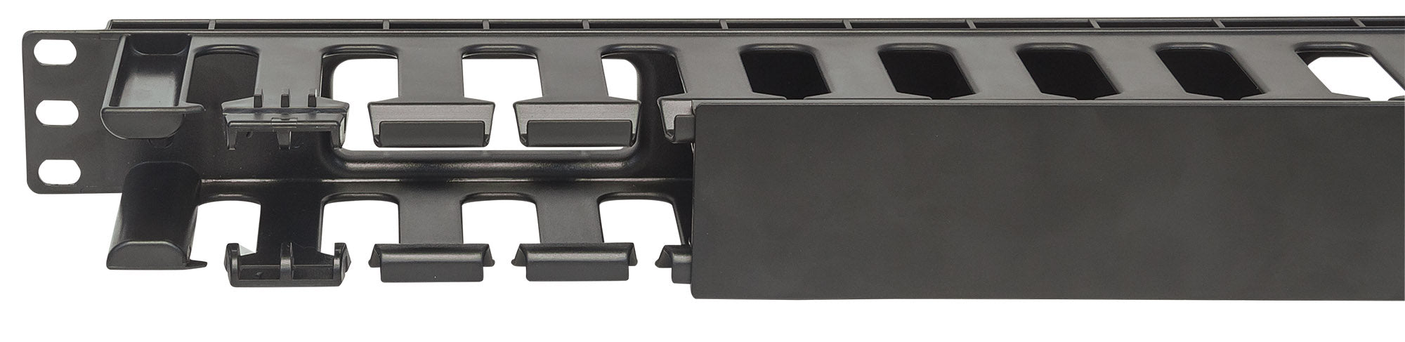Pannello di gestione cavi 19", 1U, con copertura, Nero