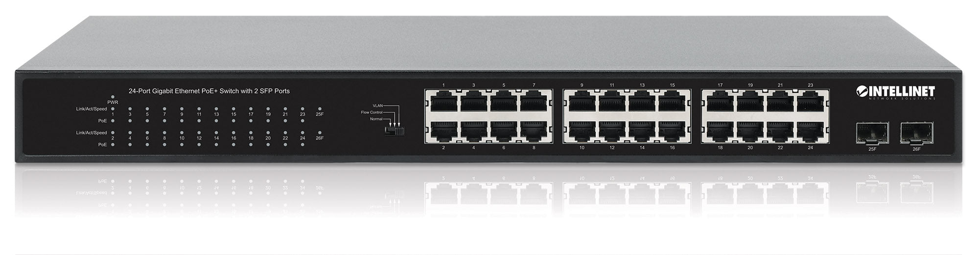 - Switch PoE+ Gigabit Ethernet a 24 porte con 2 porte SFP